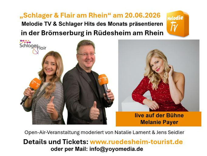 Das Repertoire der aus Funk und Fernsehen bestens bekannten Schlagersängerin ist mittlerweile so umfangreich, dass sie ein abendfüllendes Programm allein mit ihren eigenen Hits bestreiten kann. 100% Melanie Payer ist garantiert.